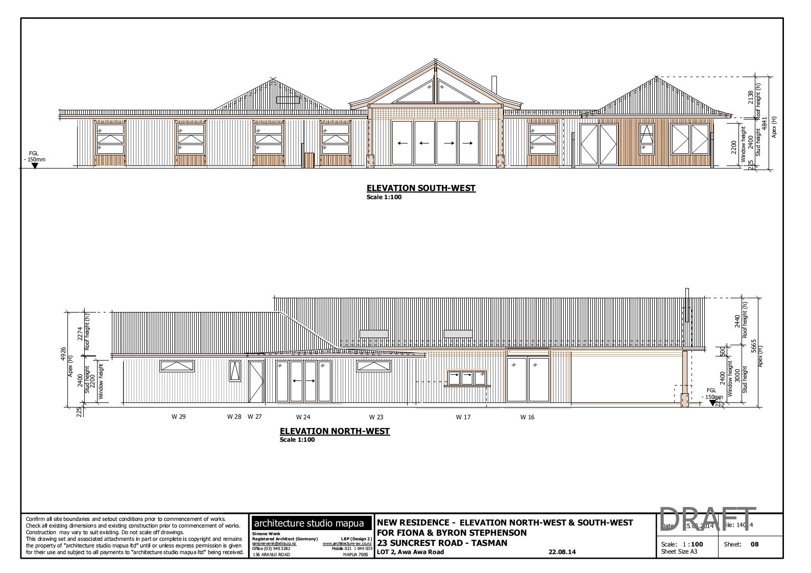 2014 March 30, 2015August 8, 2016 / architecture studio mapua STEPHENSON, TASMAN New Residence (Design) 2014 Floor Plan Elevation South-East & South-West Elevation South-West & North-West Cross Sections Share this: Click to share on X (Opens in new window) X Click to share on Facebook (Opens in new window) Facebook Like Loading...